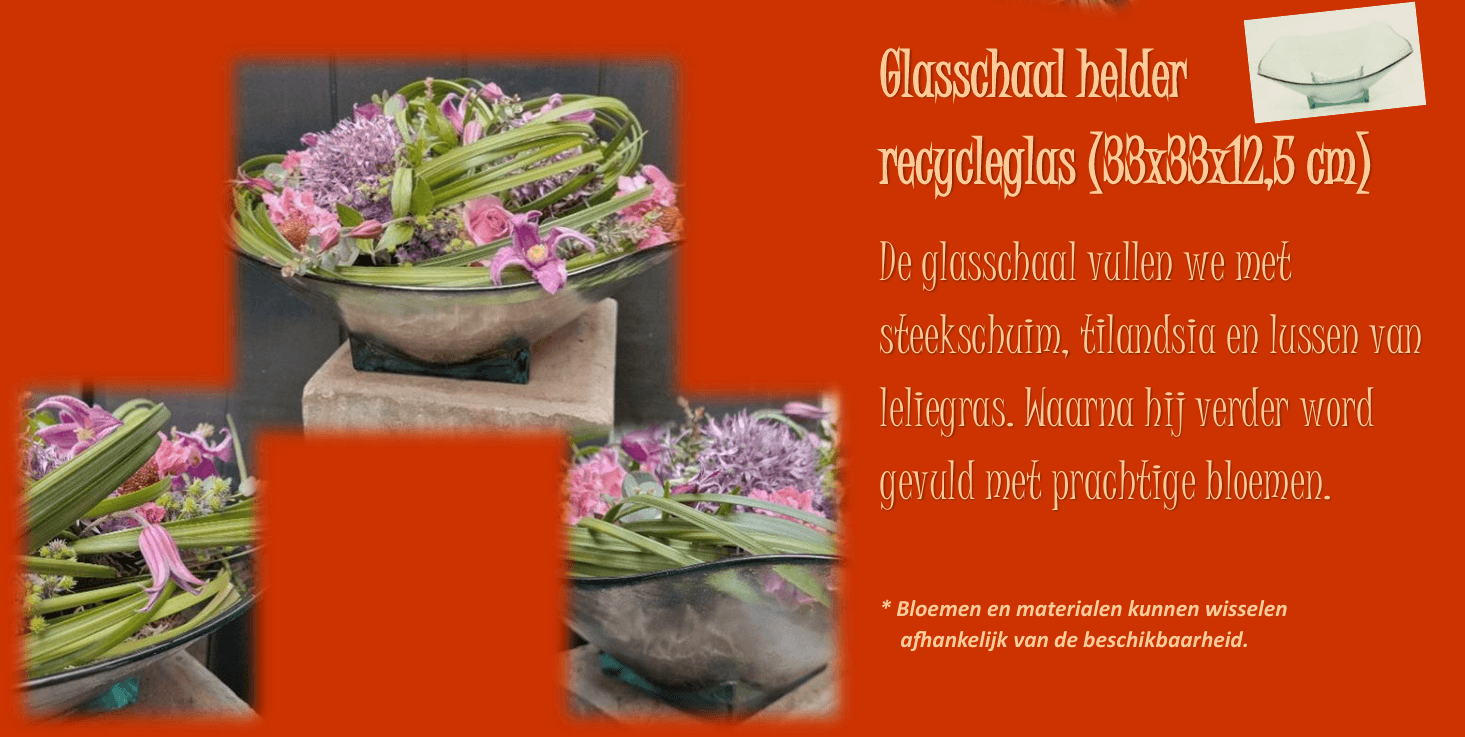 Hart van Oasis Biolit (25,5 cm), Glasschaal helder recycleglas (33x33x12,5 cm)
